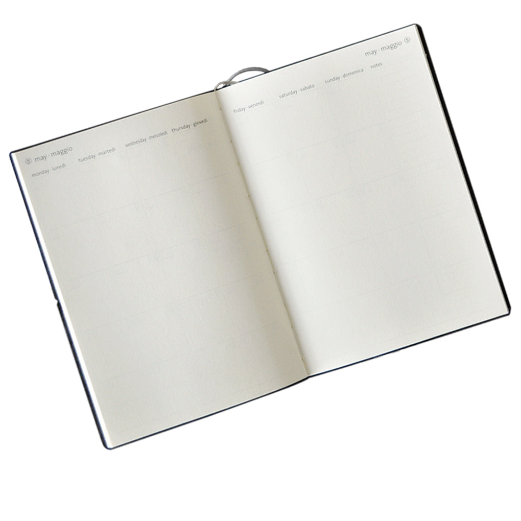 The "Smart" is our most intelligent CIAK notebook yet! It is an All-In-One notebook with lined and numbered pages, index sheets, perpetual monthly planner, a contact list and a two ribbon bookmark bound into the pages. The cover is a flexible textured recycled leather with a contrasting colored Ciak patented elastic closure.
