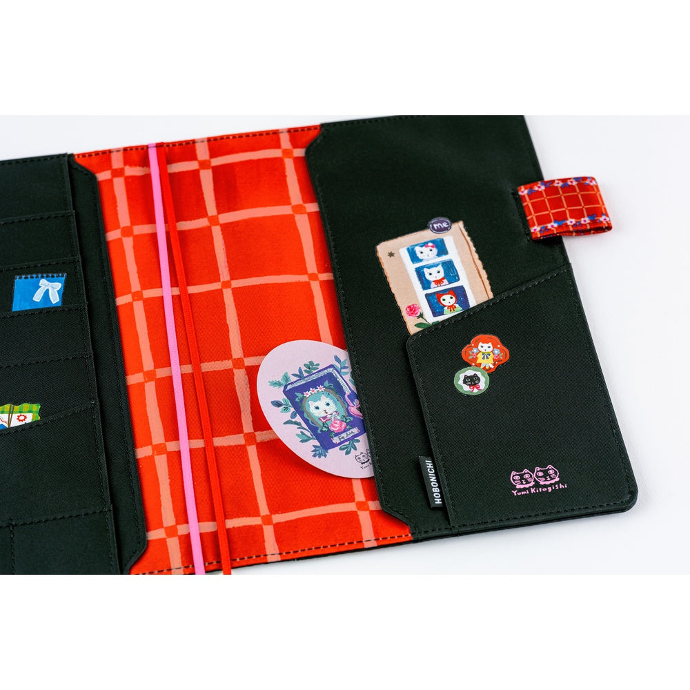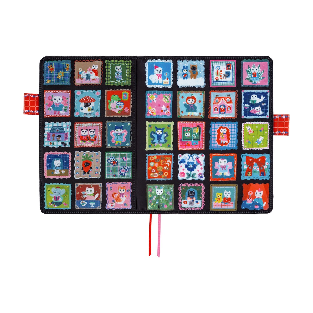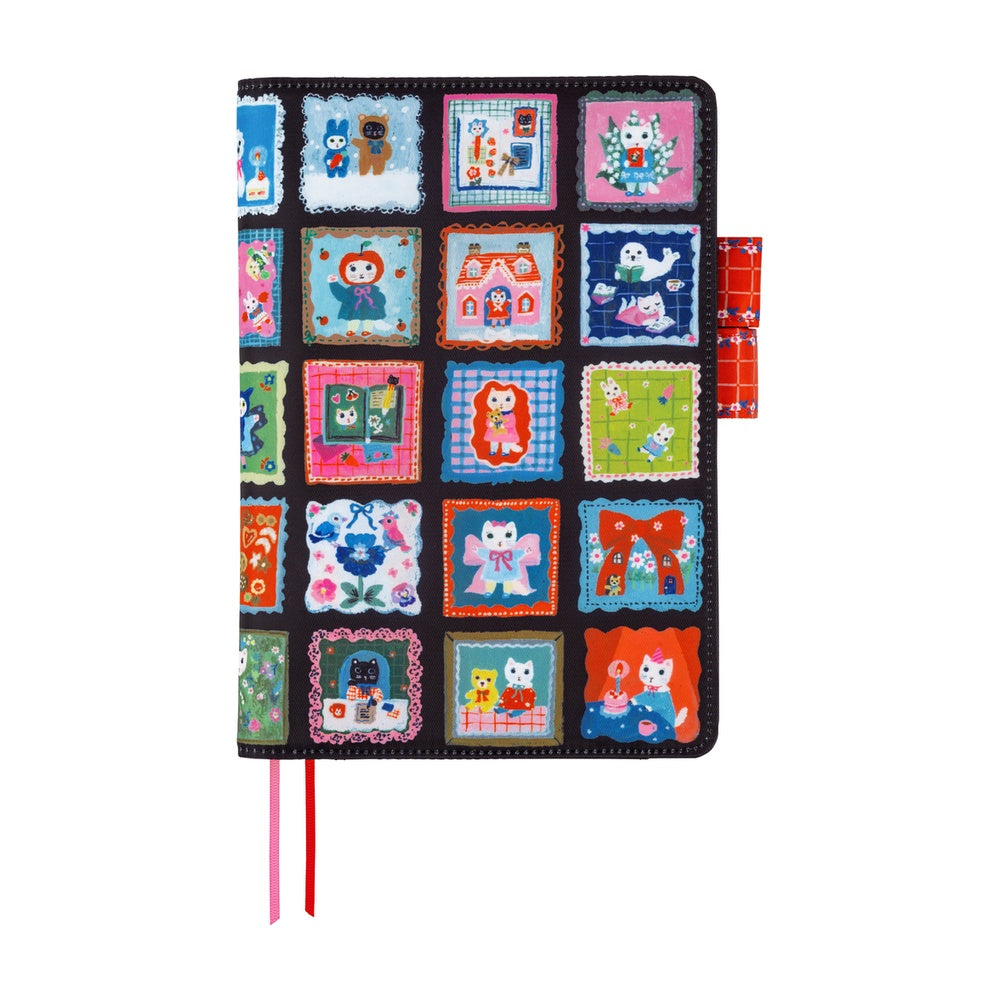 Printed with Yumi Kitagishi’s artwork depicting the fun everyday life of a white cat. There is a big pocket on the back of the cover with a different illustration inside it. Why not have a peek? It has "butterfly stopper" pen holders, which also function as a clasp to keep the cover shut.