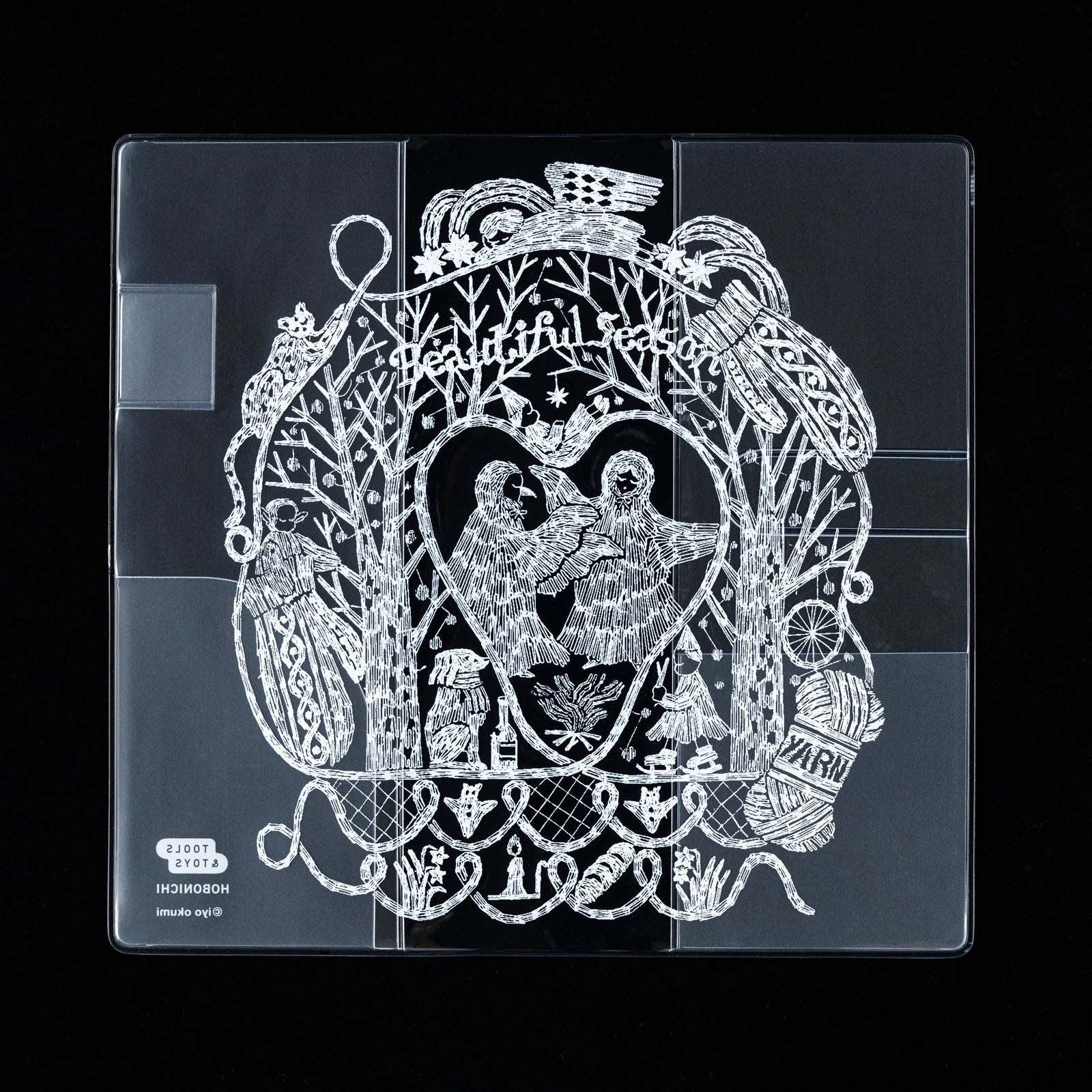 This clear cover fits onto a Hobonichi Techo to protect it from wear and tear. This is a print of embroiderer and illustrator Iyo Okumi's embroidered artwork. This is called "Beautiful Season" and depicts the beauty of the winter season.