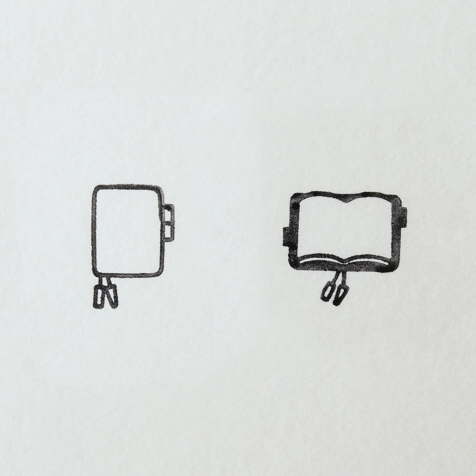 The cute Exterior and Interior stamp designs were drawn by illustrator Saki Obata and shape the Hobonichi Techo with rounded edges. You can stamp these pictures into your pages with your favorite color ink to add a little flair.