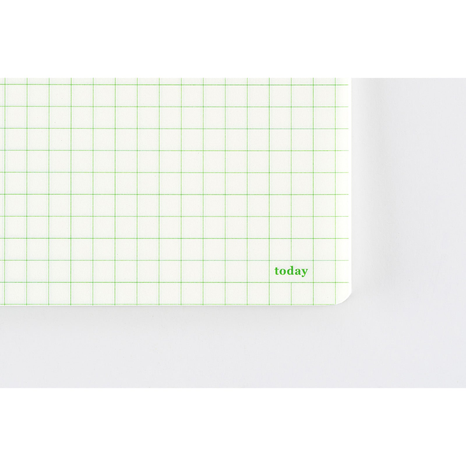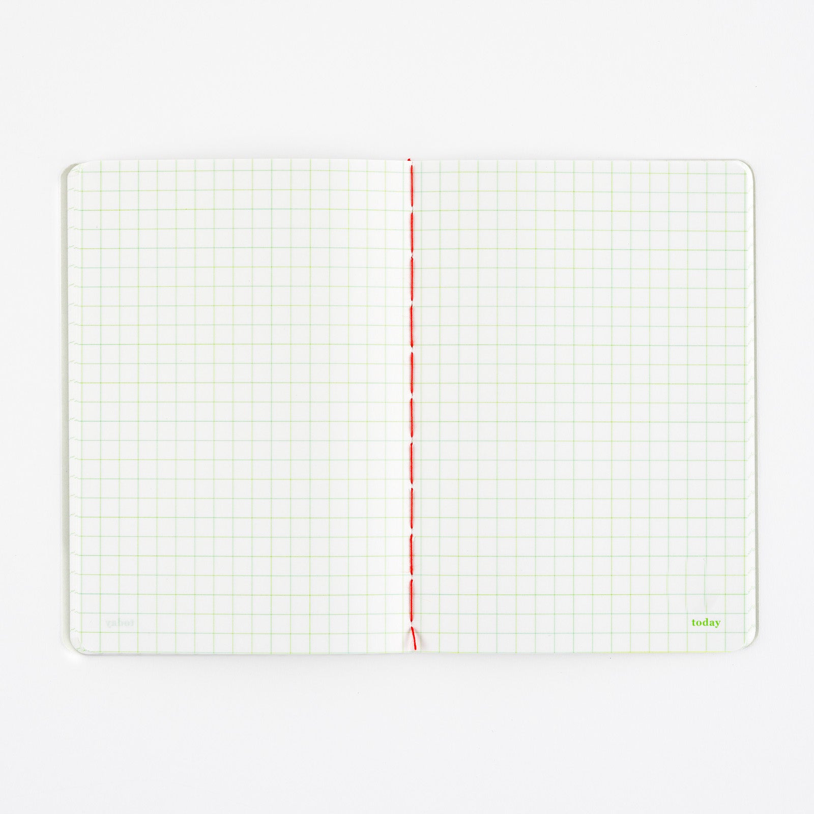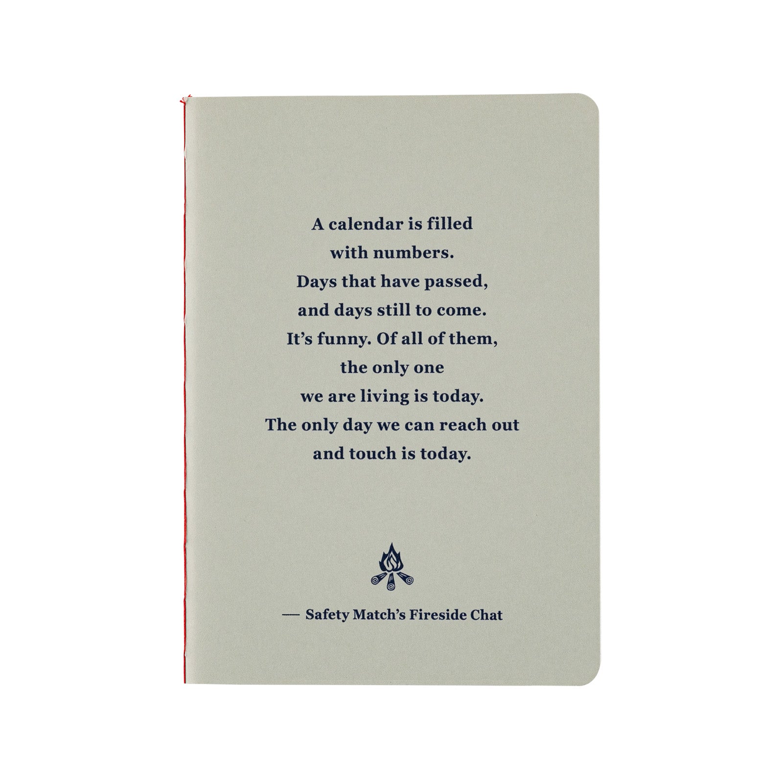 Fireside Chat Graph notebook incorporates motifs based on the words of Safety Match. The corner of the page has the word "Today." The pages have a 5mm graph paper printed in green, and the cover is a pale gray.
