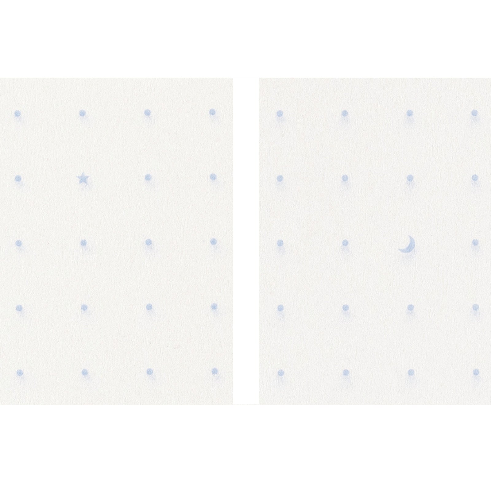 Fireside Chat Dot Grid notebook incorporates motifs based on the words of Safety Match. Look closely and you'll spot a star and moon within the dots. The dots on the pages are 5mm apart and printed in blue gray. The cover is a pale blue.