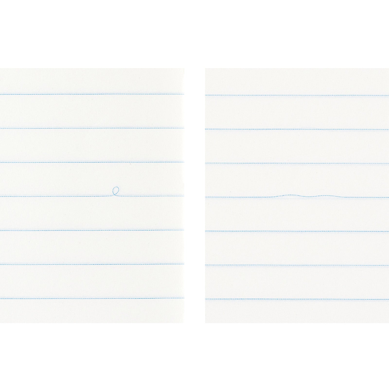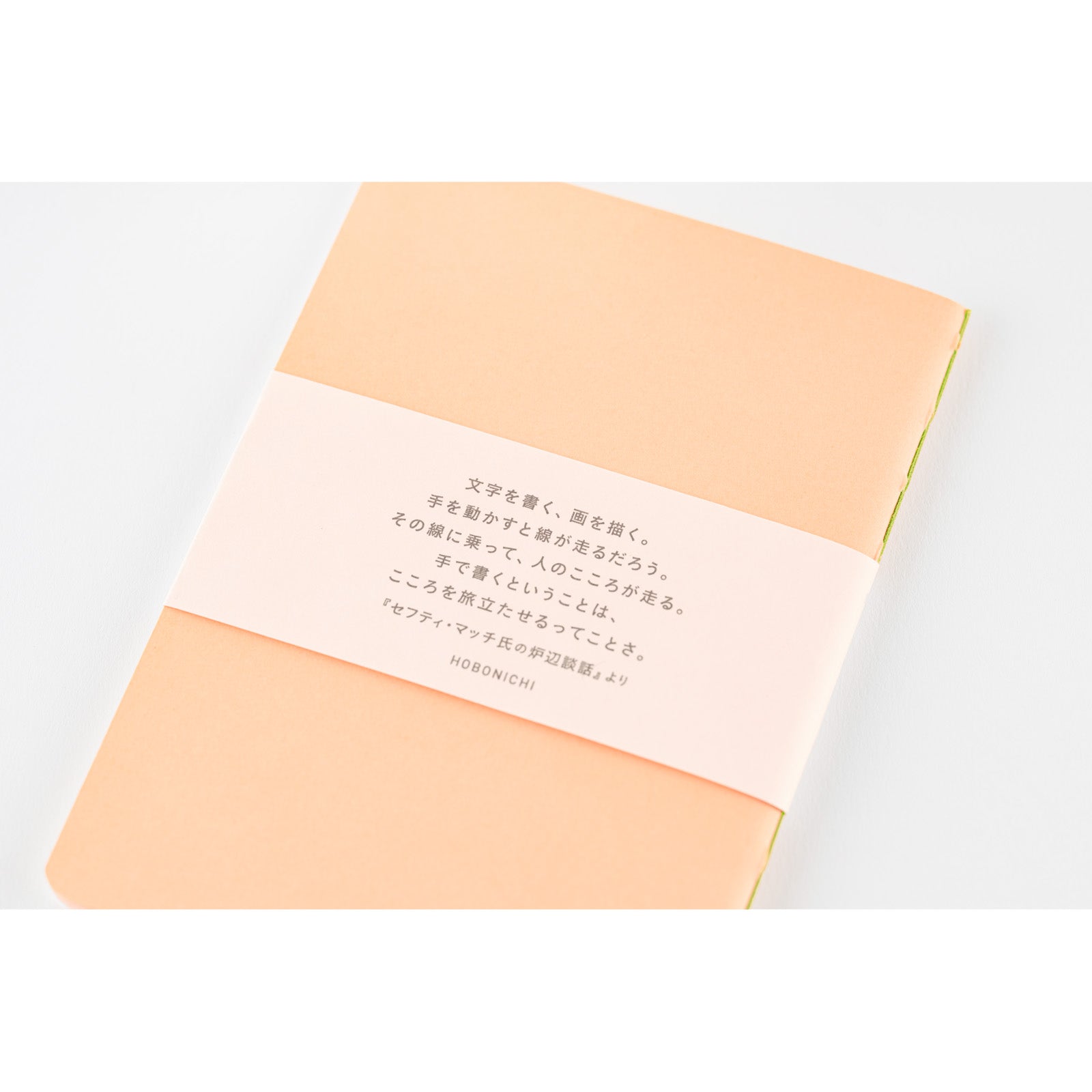 Fireside Chat Lined notebook incorporates motifs based on the words of Safety Match. Some of the ruled lines are rounded or uneven as if written by hand. The lines are printed 7mm apart in blue, and the cover is a pale salmon pink.