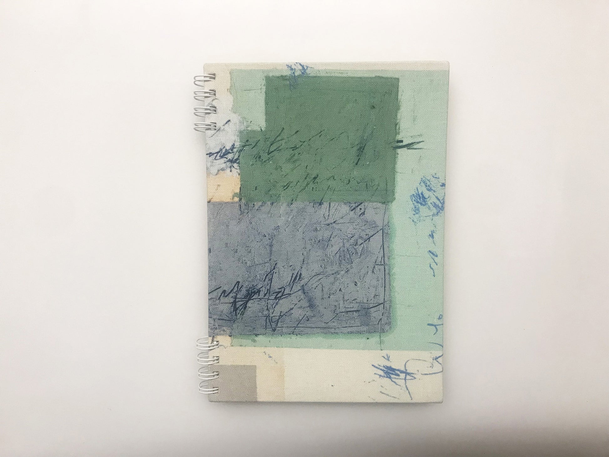 The collages are created by exploring a variety of materials and textures using linework, text, painting and silkscreen printing.