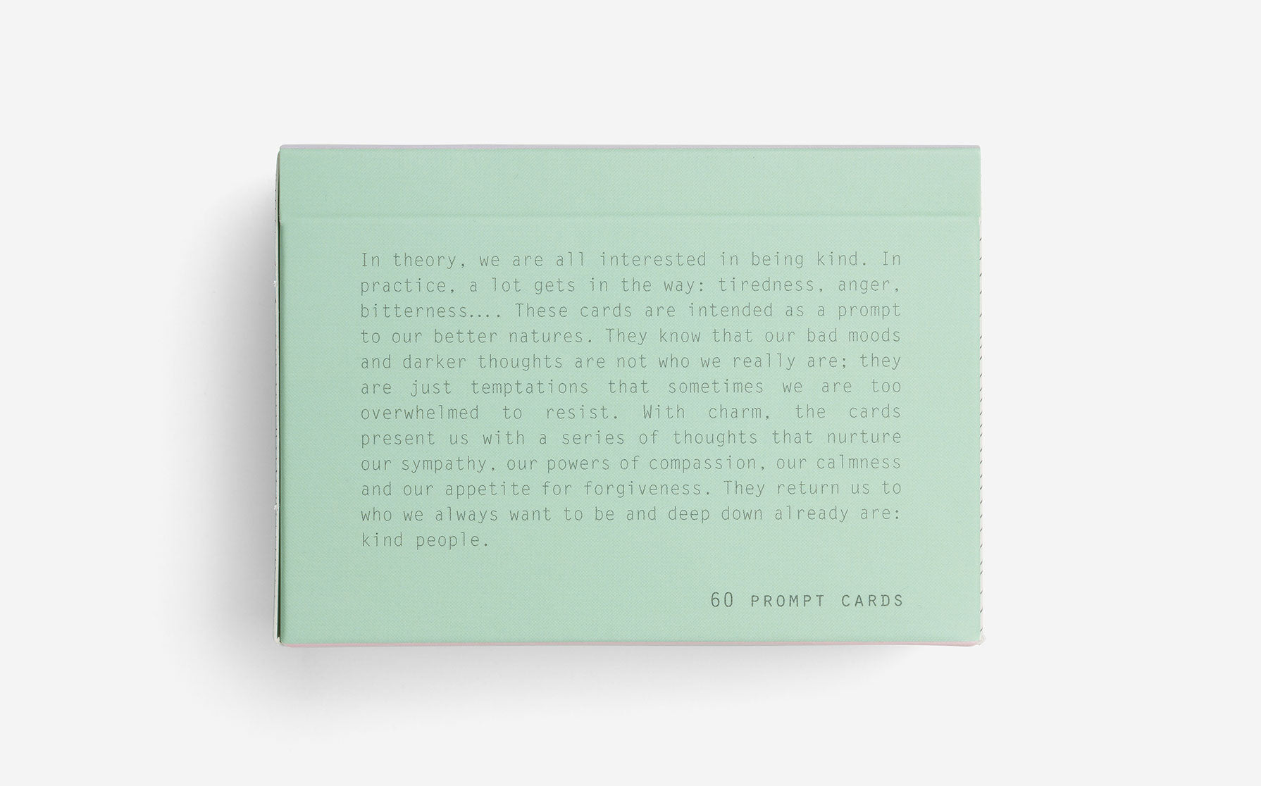 These Kindness Prompt Cards are designed to bring out our better natures. They present us with a series of thoughts that nurture our sympathy, our powers of compassion, and our appetite for forgiveness. They return us to who we always want to be and deep down already are: kind people.