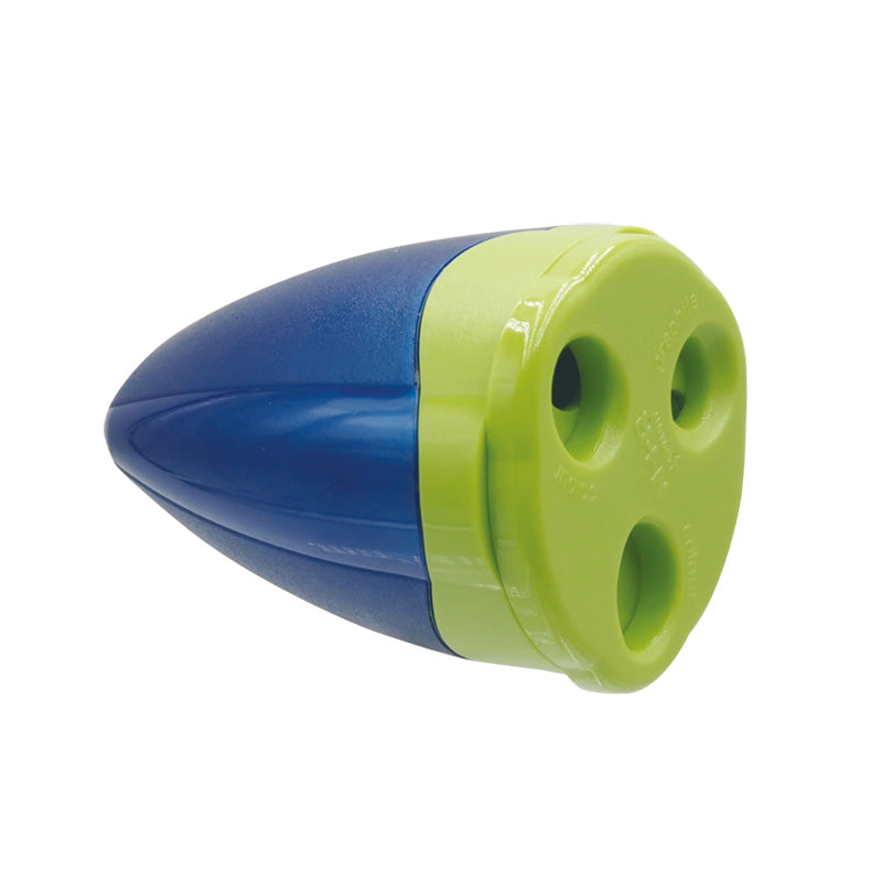 Triple can sharpener for lead, colored and jumbo pencils, with plastic built-in sharpener, ergonomic shape, screw cap with marking for lead and colored pencils