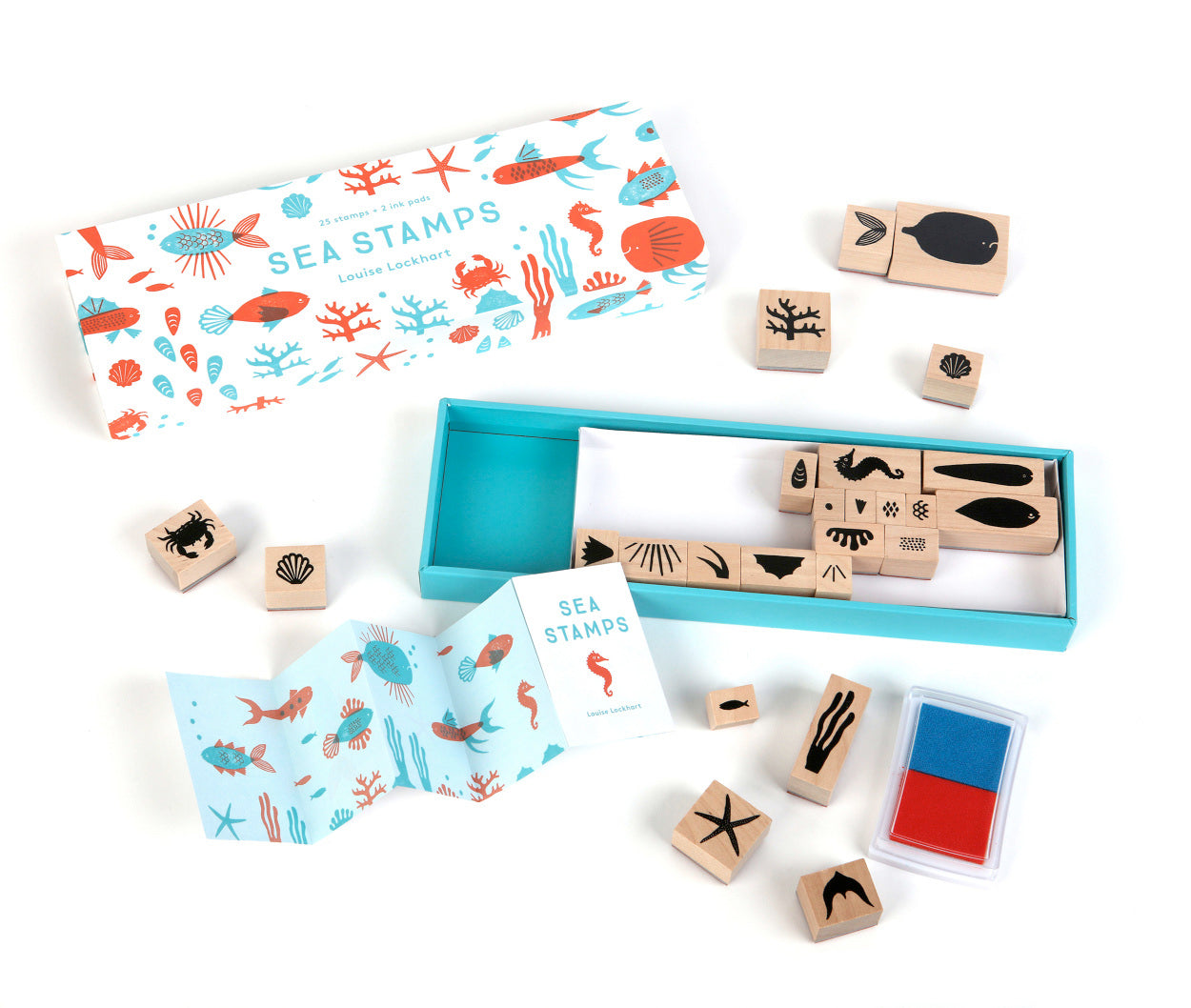 Fins and shells, tails and scales, Sea Stamps is a spirited collection of twenty five shapes and textures waiting to be mixed and matched to invent your own creatures in their sea surroundings--bustling tide pools, bright coral reefs, and magical ocean floors. The combinations are infinite!