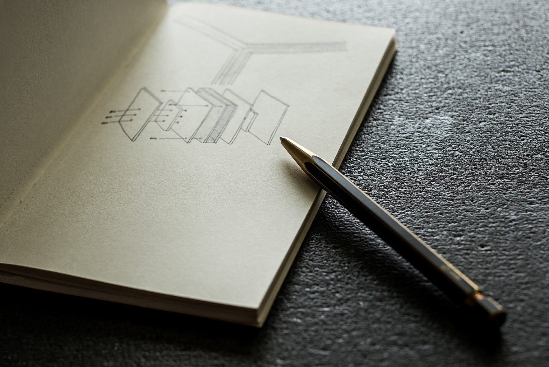 Simple, black, with a hint of metal. With the pen's spiral exposed on top, the designers of ystudio combine the mechanics of a pen with the distinctive looks of the Brassing collection. Due to its heavy material, the pen is sure to provide stability while writing. Due to its unusual looks, it will become something to hold on to.